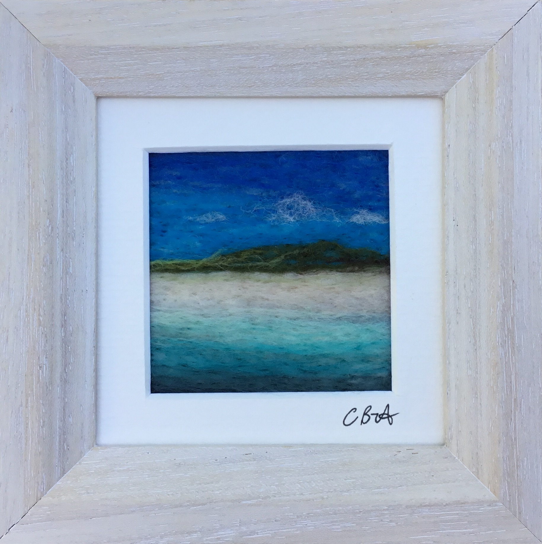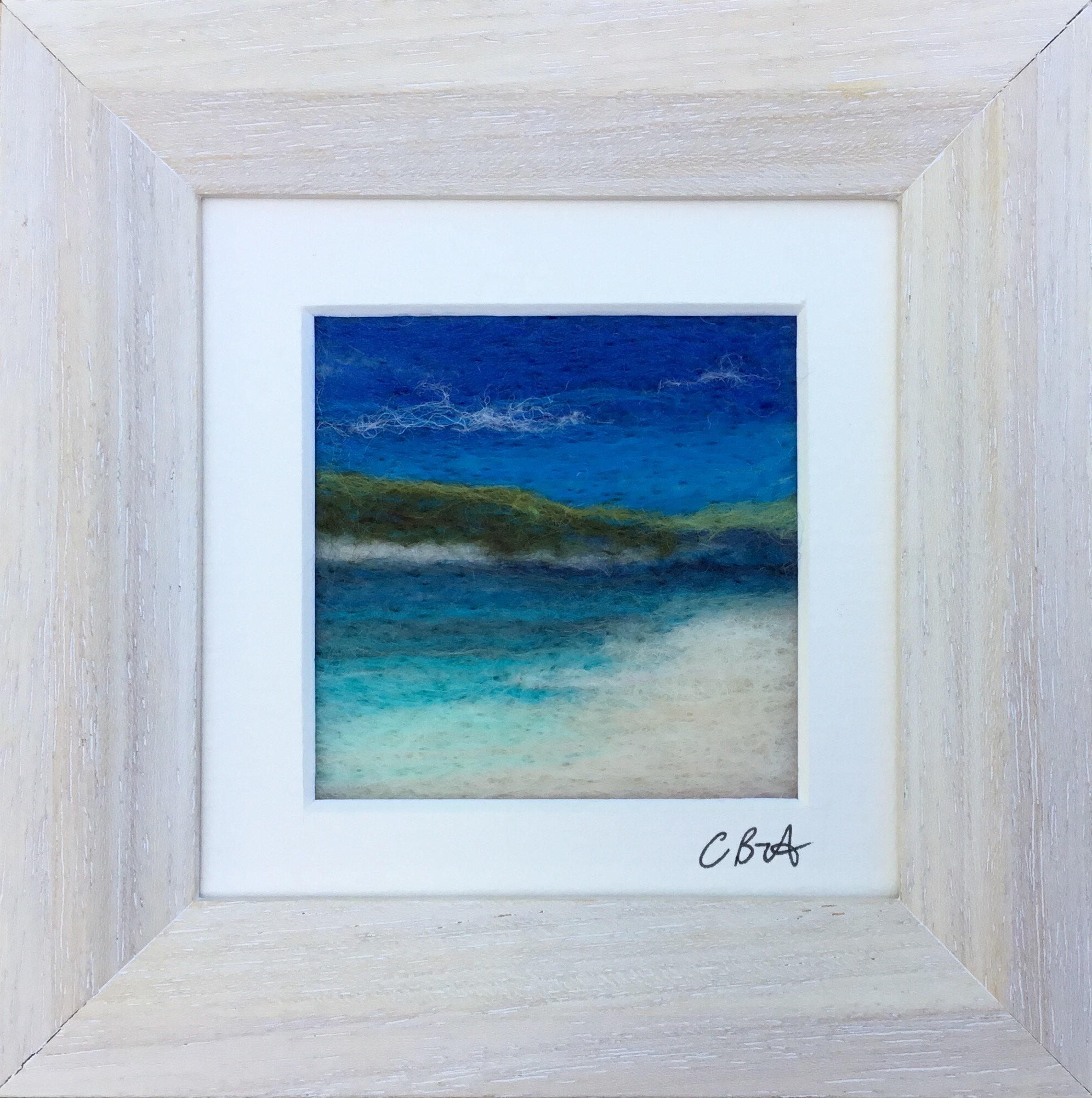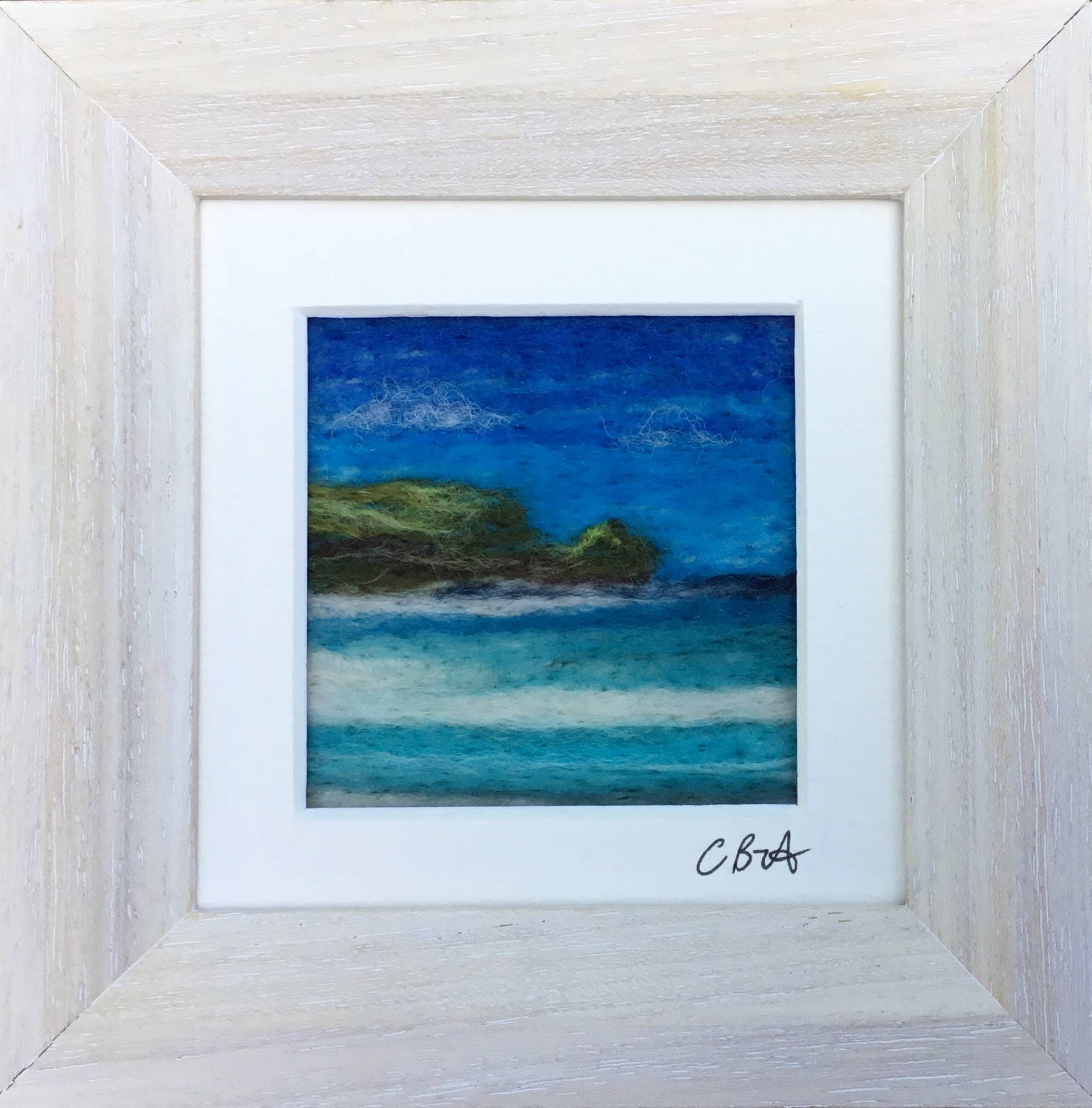 The North Coast Cornwall series is created using wet felting and finished with needle felting. Framed and ready to hang. Wools such as Portland, Cheviot and Merino are used with occasional touches of silk. There are a variety of themes and sizes.